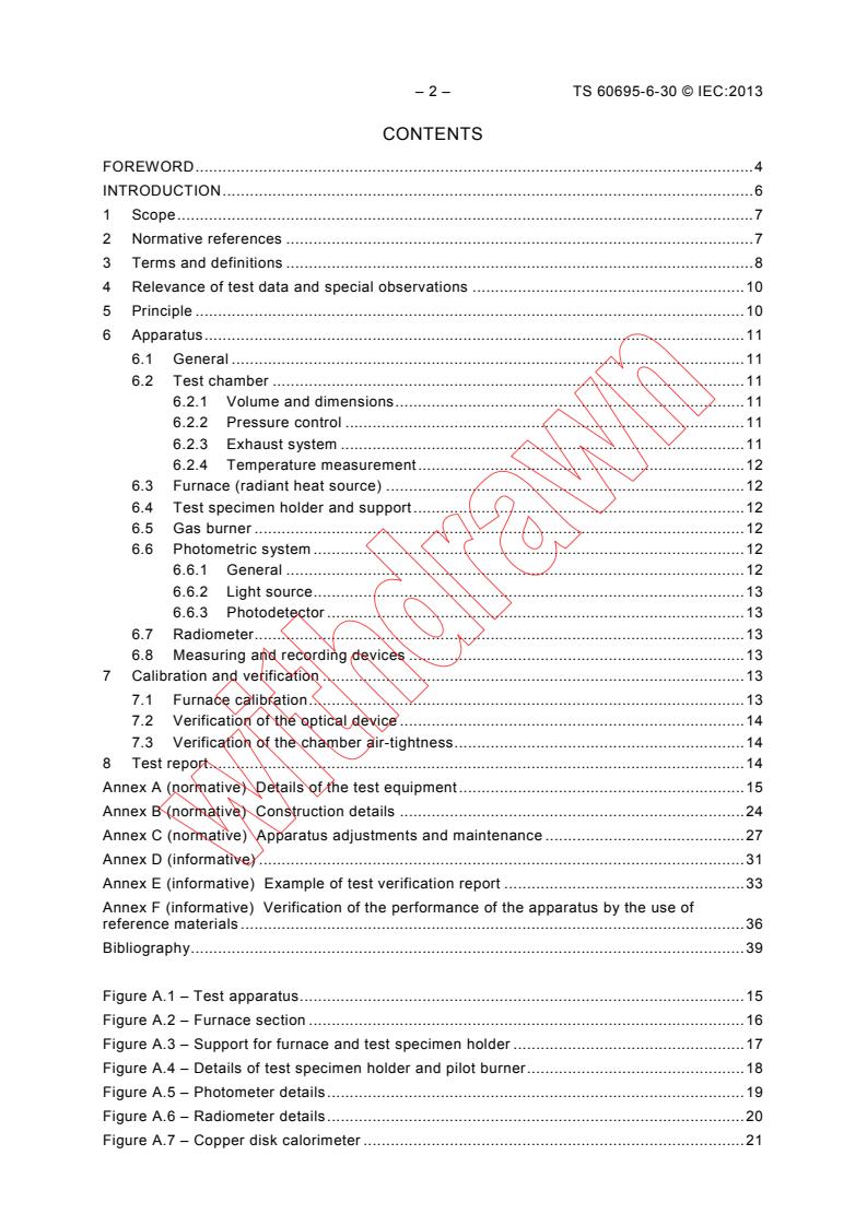 IEC TS 60695-6-30:2013 is a technical specification published by the International Electrotechnical Commission (IEC). Its full title is "Fire hazard testing - Part 6-30: Smoke obscuration - Small-scale static method - Apparatus". This standard covers: IEC/TS 60695-2-30:2013 describes the apparatus, calibration procedures and basic experimental procedures for the determination of the specific optical density of smoke produced by materials exposed vertically to a radiant heat source with or without the application of a pilot flame. The test specimens are of a defined size. The determination of the optical density is carried out in a pressure-controlled chamber previously calibrated with reference materials. The test methods are only applicable to flat, solid, non-metallic test specimens, of materials used in electrotechnical products. This technical specification does not provide a classification system for the behaviour of materials. The test methods are not applicable for materials that melt and flow away from the direct impingement of heat flux. The test methods are not recommended for further development for electrotechnical products nor are they recommended as the basis for regulation or other controls on smoke release due to the limitations of the physical fire model and the test specimen geometry - see Clause 4. This second edition of IEC/TS 60695-6-30 cancels and replaces the first edition published in 1996. It constitutes a technical revision. The main changes with respect to the previous edition are as follows: - This publication is to be re-designated as a technical specification. - The title has been modified to align with the IEC Directives. - The FOREWORD has been revised and updated. - An INTRODUCTION has been added. - The Scope has been updated. - The normative references have been updated. - The terms and definitions have been updated. - Clause 4: Relevance of test data and special observations has been revised. - Detailed editorial updates have been added throughout the document. It has the status of a basic safety publication in accordance with IEC Guide 104 and ISO/IEC Guide 51. Keywords: Smoke obscuration, Fire Hazard. This publication is to be read in conjunction with IEC 60695-6-31:2013.