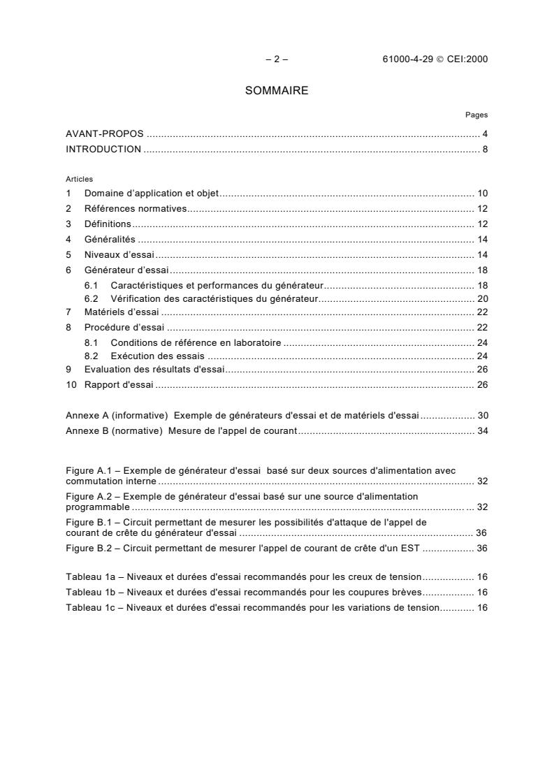 IEC 61000-4-29:2000 is a standard published by the International Electrotechnical Commission (IEC). Its full title is "Electromagnetic compatibility (EMC) - Part 4-29: Testing and measurement techniques - Voltage dips, short interruptions and voltage variations on d.c. input power port immunity tests". This standard covers: Establishes a common and reproducible basis for testing electrical and electronic equipment when subjected to voltage dips, short interruptions or voltage variations on d.c. power ports. This standard defines: - the range of test levels; - the test generator; - the test set-up; - the test procedure.