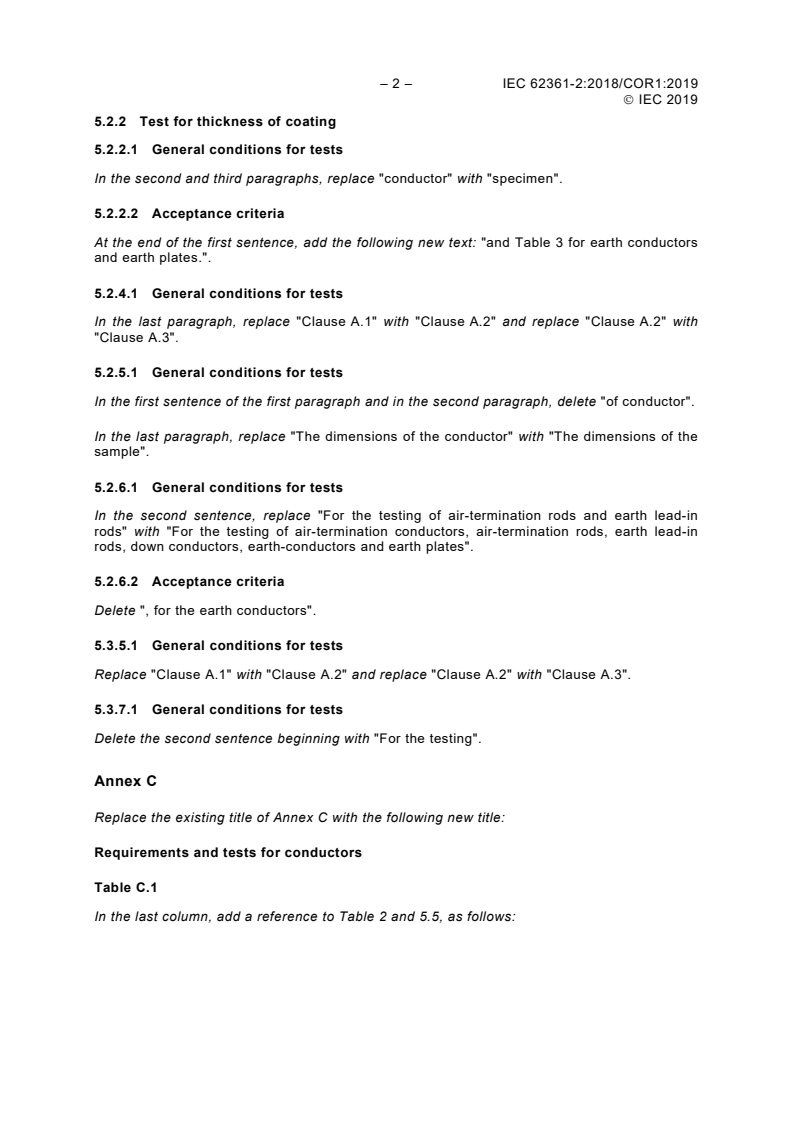 (Corrigendum)Corrigendum 1 - Lightning protection system components (LPSC) - Part 2: Requirements for conductors and earth electrodes