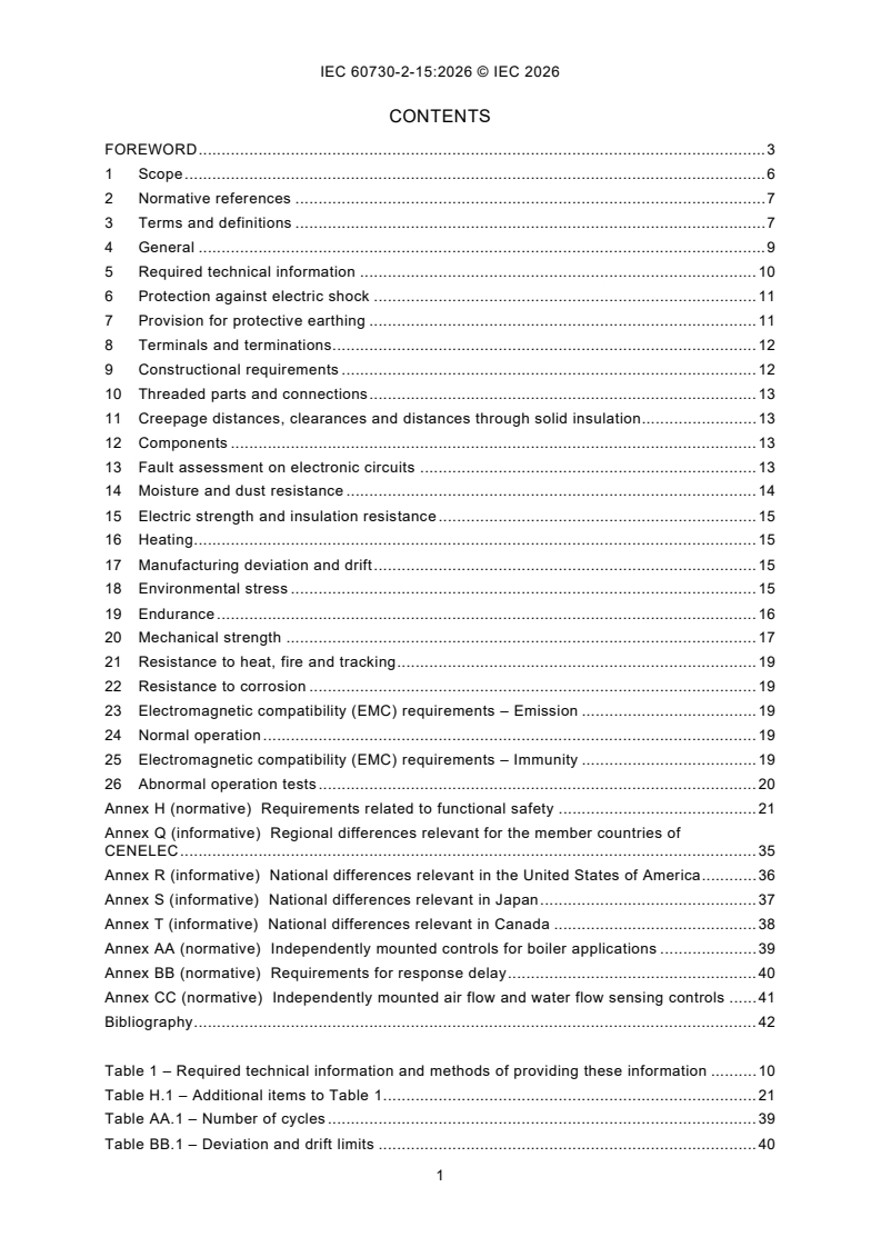 IEC 60730-2-15:2026 is an international standard developed by the International Electrotechnical Commission (IEC) for automatic electrical air flow, water flow, and water level sensing controls. This standard provides essential requirements for the design, construction, and testing of such controls used in various applications, including household appliances, boilers, building automation, and commercial equipment. The goal is to ensure both the inherent safety and functional safety of automatic electrical controls that sense or regulate air and water flows or water levels.