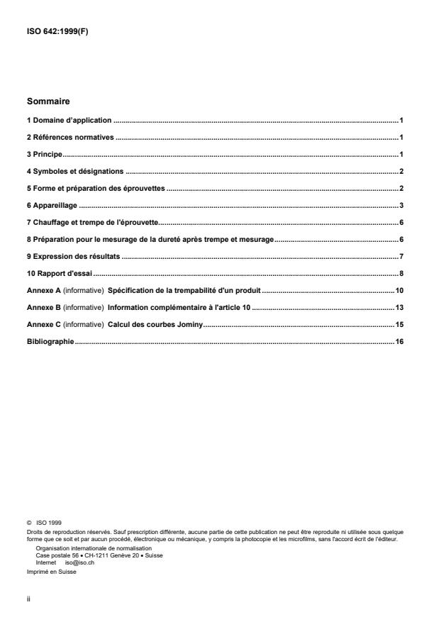 ISO 642:1999 is a standard published by the International Organization for Standardization (ISO). Its full title is "Steel — Hardenability test by end quenching (Jominy test)". This standard covers: La présente Norme internationale spécifie la méthode de détermination de la trempabilité de l'acier par trempe en bout (essai Jominy), à l'aide d'une éprouvette de 25 mm de diamètre et 100 mm de longueur.NOTE Par accord et pour un domaine donné d'application, l'essai décrit dans la présente Norme internationale peut être remplacé par le calcul de la courbe Jominy conformément à un modèle mathématique accepté (voir annexe C). En cas de litige, l'essai doit être effectué.
