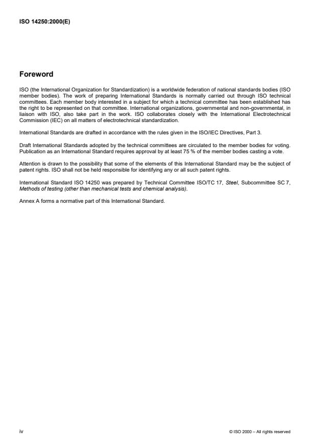 La Norme internationale ISO 14250 a étéélaboréepar le comité technique ISO/TC 17, Acier, sous-comité SC 7,