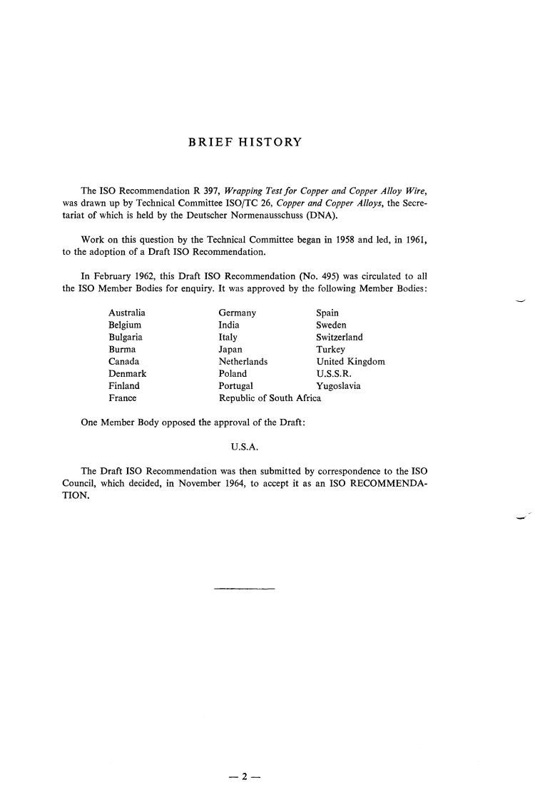 In February 1962, this Draft IS0 Recommendation (No. 495) was circulated to all