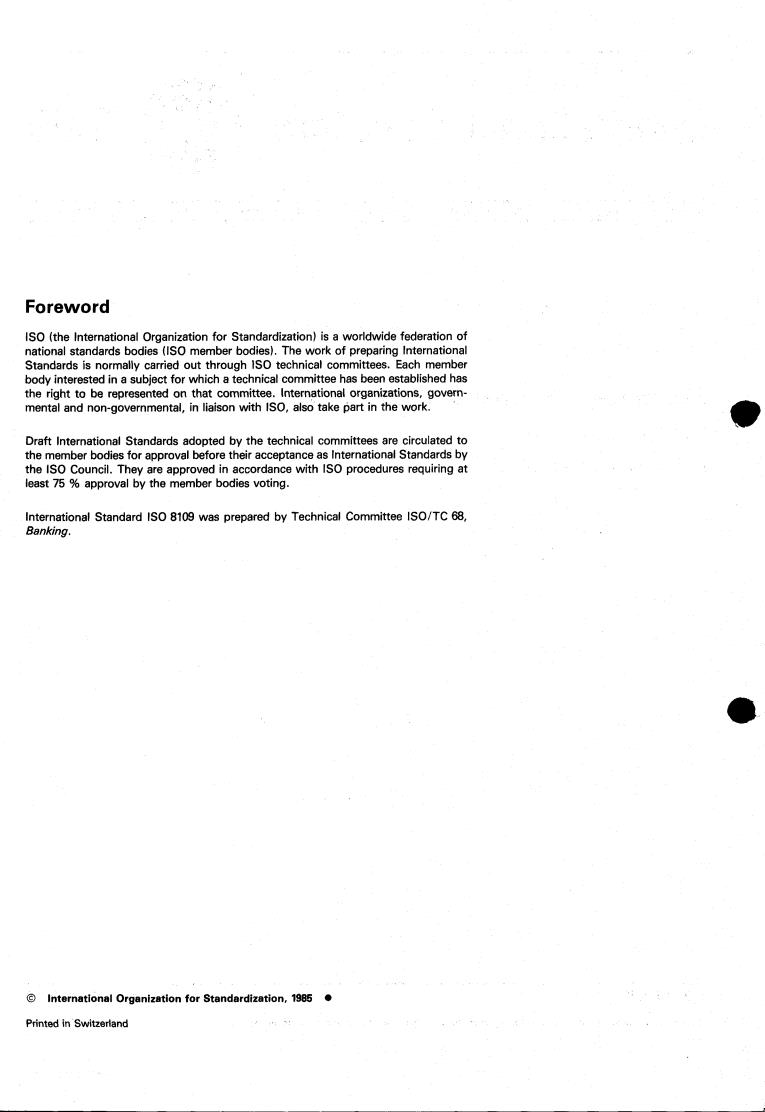 International Standard IS0 8109 was prepared by Technical Committee ISO/TC 68,