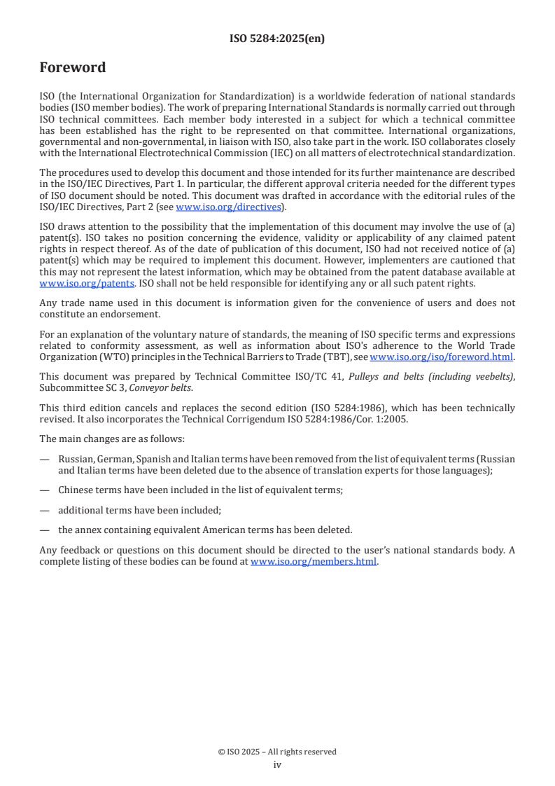 REDLINE ISO 5284:2025 - Courroies transporteuses — Liste des termes équivalents Released:29. 01. 2025