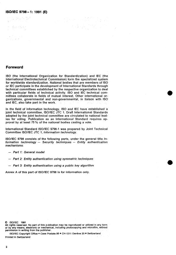 International Standard ISO/IEC 9798-1 was prepared by Joint Technical