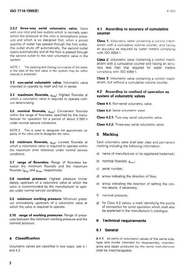 ISO 7714:1995 - Agricultural irrigation equipment -- Volumetric valves -- General requirements and test methods