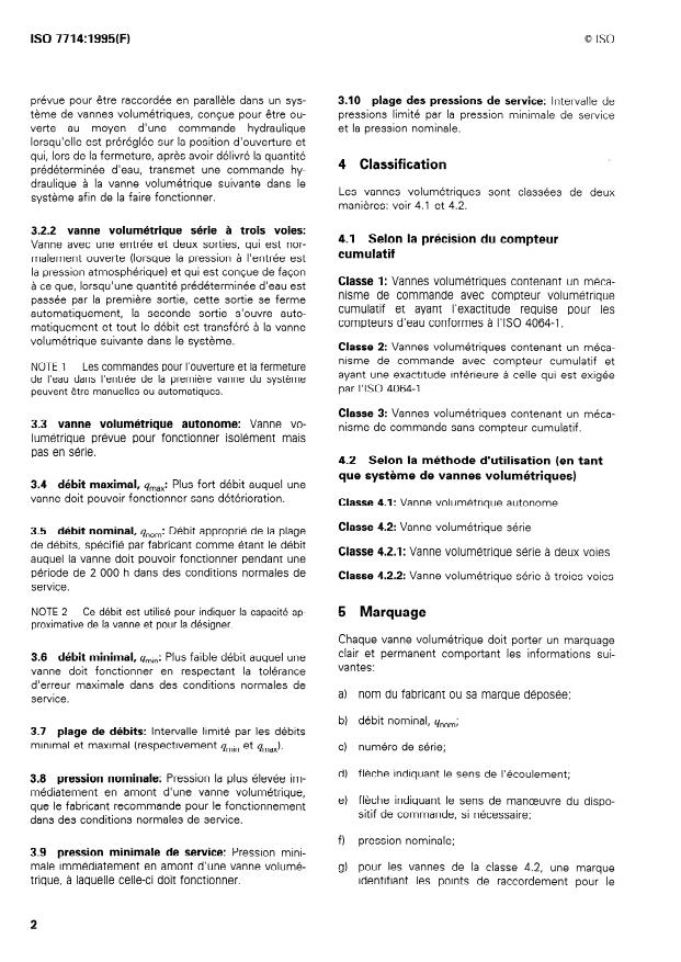 ISO 7714:1995 is a standard published by the International Organization for Standardization (ISO). Its full title is "Agricultural irrigation equipment — Volumetric valves — General requirements and test methods". This standard covers: Agricultural irrigation equipment — Volumetric valves — General requirements and test methods
