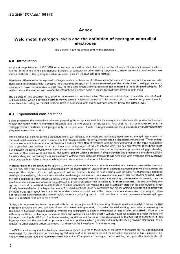 Welding — Determination of hydrogen in deposited weld metal arising from the use of covered electrodes for welding mild and low alloy steels — Addendum 1