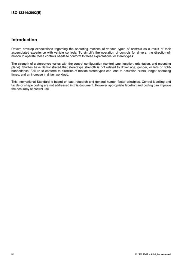 ISO 12214:2002 is a standard published by the International Organization for Standardization (ISO). Its full title is "Road vehicles — Direction-of-motion stereotypes for automotive hand controls". This standard covers: This International Standard gives design recommendations and requirements for the direction-of-motion of hand controls found in passenger, multipurpose and commercial vehicles, and buses.