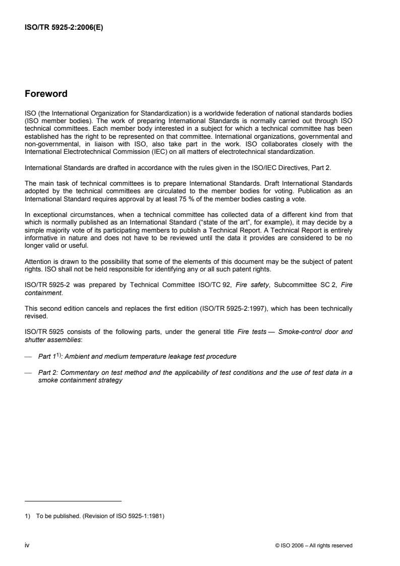 Keywords: ISO/TR 5925-2:2006, smoke-control door, smoke containment strategy, leakage test, door assembly, shutter assembly, fire safety, ambient temperature, medium temperature.