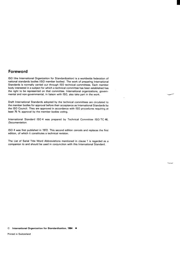 International Standard IS0 4 was prepared by Technical Committee ISO/TC 46,