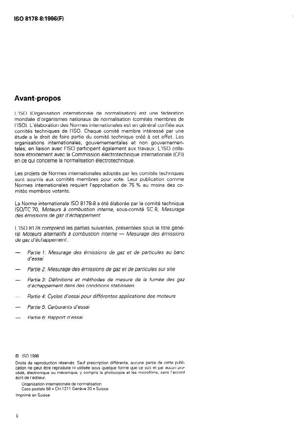 L’ISO 8178 comprend les parties suivantes, présentées sous le titre géné-