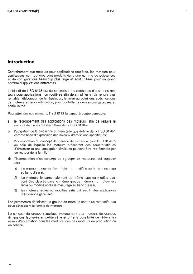 c) l’incorporation du concept de ((famille de moteurs)) (voir I’ISO 8178-7)