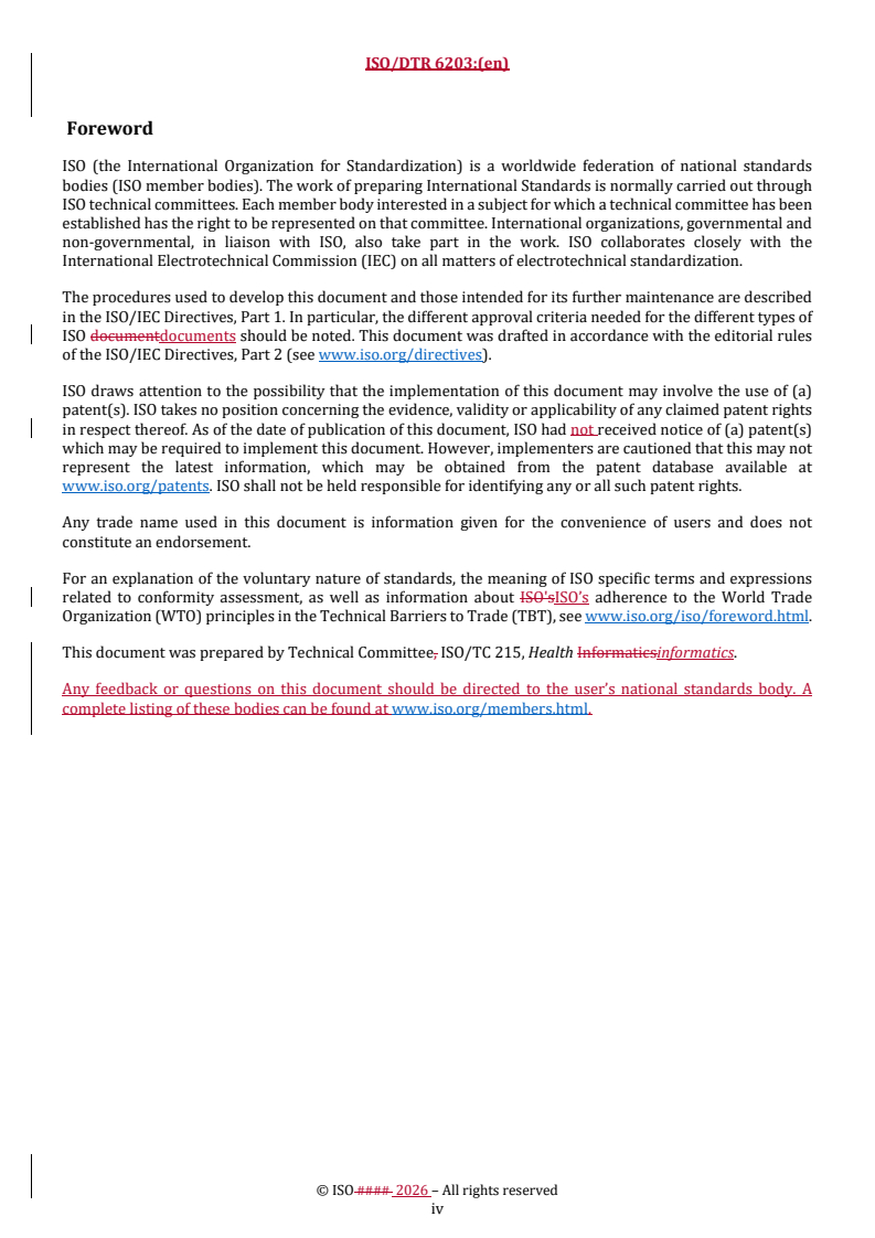 REDLINE ISO/DTR 6203 - Health informatics — Personalized digital health — Common factors for frailty assessment Released:12. 01. 2026