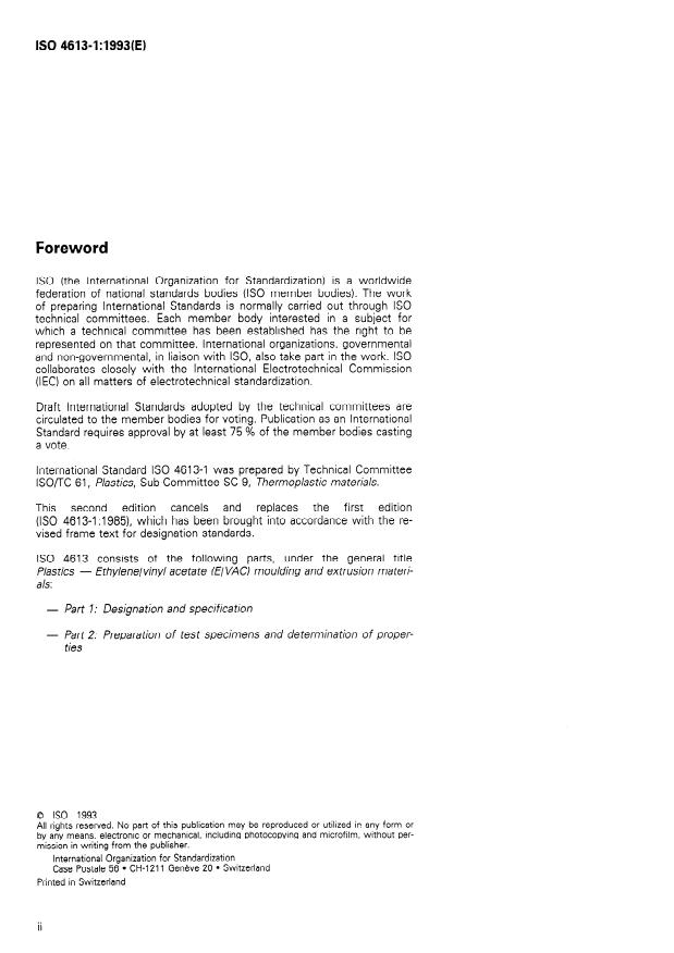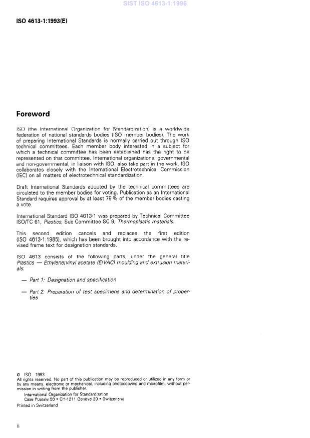 INTERNATIONAL STANDARD ISO 4613-1 Second edition 1993-10-01 Plastics - Ethylenelvinyl acetate (E/VAC) moulding and extrusion materials - Part 1: Designation and specification Plas tiques - Matkiaux a base de copolymkre &hyl&ne/ac&ate de vinyle (E/VAC) pour moulage et extrusion - Partie 1: Dksigna tion et spkifica tion Reference number ISO 4613-17 993(E) SIST ISO 4613-1:1996