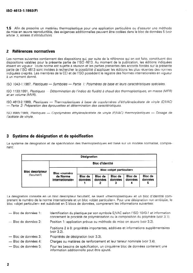 I SO 4613-2: 1989, Plastiques - Thermoplastiques à base de copolymères d’éth ylène/acéta te de vin yle (E/vAC)