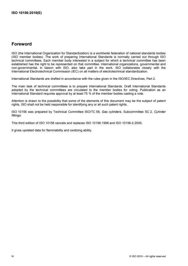 ISO 10156:2010 - Gases and gas mixtures -- Determination of fire potential and oxidizing ability for the selection of cylinder valve outlets