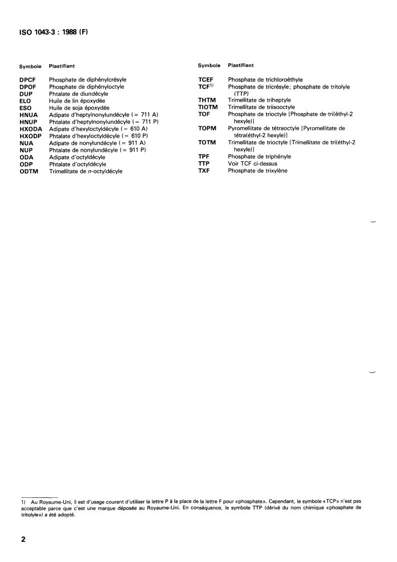 ((phosphate)) dans les symboles des plastifiants. (Voir aussi la