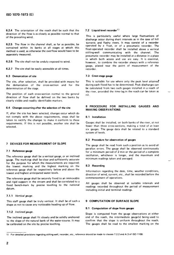 ISO 1070:1973 - Liquid flow measurement in open channels — Slope-area method Released:6/1/1973