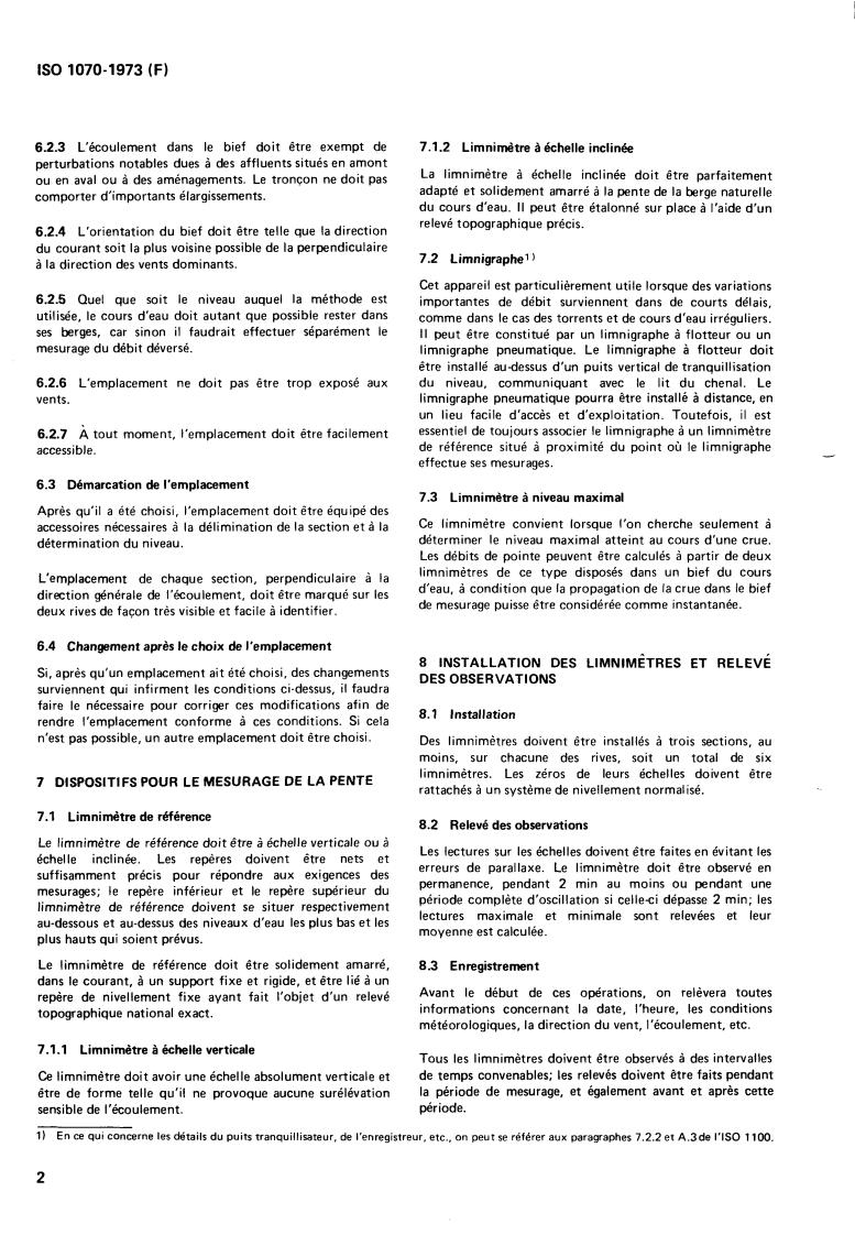 6.2.3 L’écoulement dans le bief doit être exempt de 7.1.2 Limnimètre à échelle inclinée
