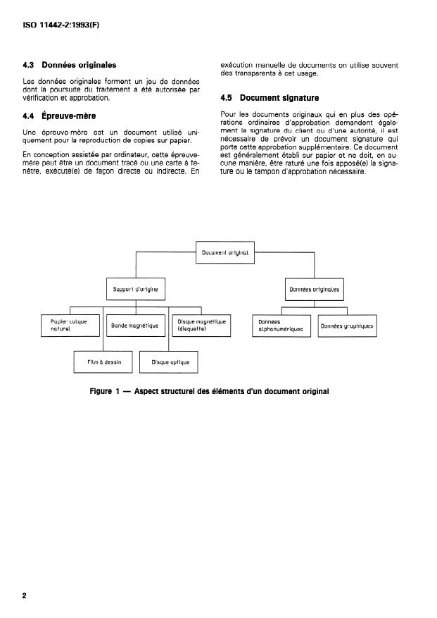 ISO 11442-2:1993 is a standard published by the International Organization for Standardization (ISO). Its full title is "Technical product documentation — Handling of computer-based technical information — Part 2: Original documentation". This standard covers: Provides original documents and related terms for use in computer-based product design processes; it also applies to manual design processes. Describes original document, original medium, original data, master print, signature document.