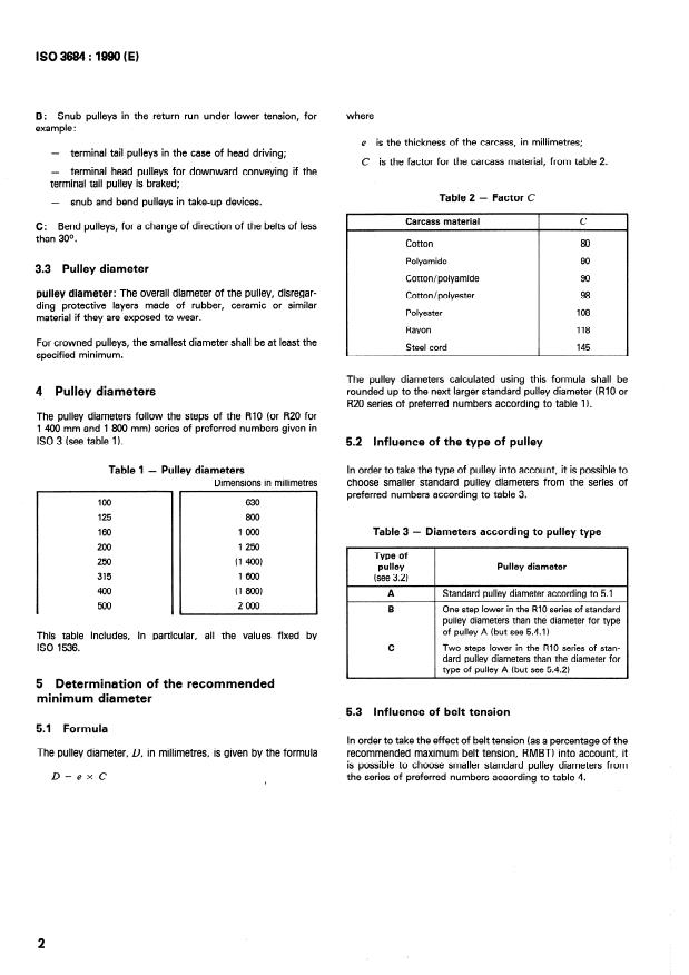 ISO 3684:1990 - Conveyor belts -- Determination of minimum pulley diameters