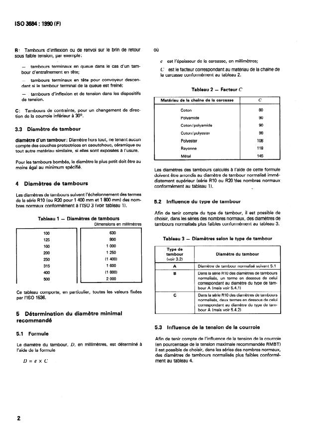 ISO 3684:1990 - Courroies transporteuses -- Détermination des diametres minimaux des tambours
