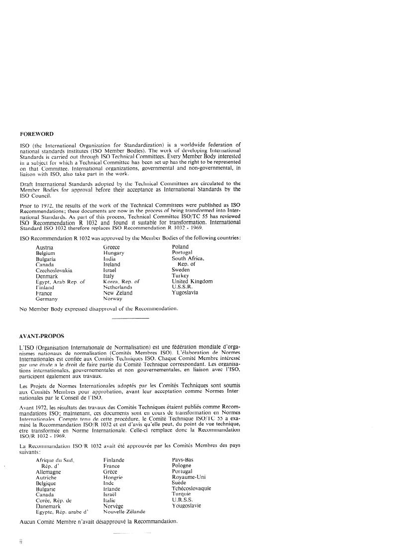 La Recommandation ISO ’R 1032 avait et& approuvee par les Comites Membres des pays
