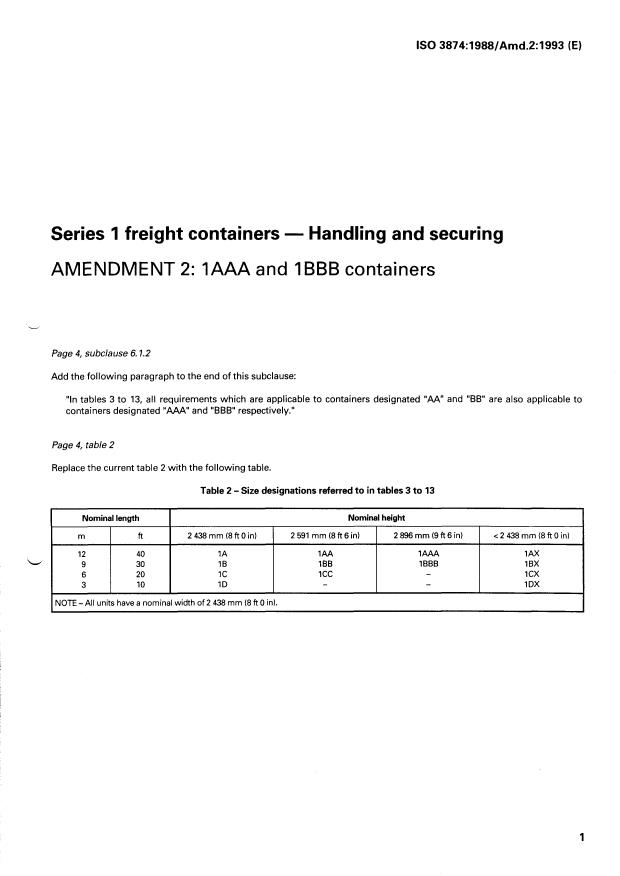 (Amendment)Series 1 freight containers — Handling and securing — Amendment 2: 1AAA and 1BBB containers