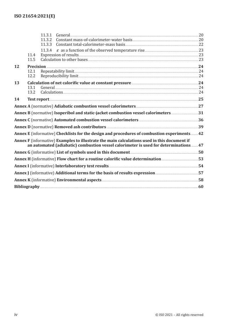 - Scope and principle: Method for determining GCV of solid recovered fuels at constant volume; GCV result basis explicitly defined.