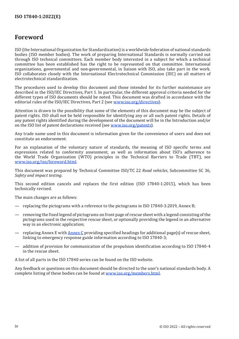 ISO 17840-1:2022 is a standard published by the International Organization for Standardization (ISO). Its full title is "Road vehicles - Information for first and second responders - Part 1: Rescue sheet for passenger cars and light commercial vehicles". This standard covers: This document defines the contents and the layout of the rescue sheet providing necessary and useful information about a vehicle involved in an accident to support the rescue team extricating the occupants as fast and as safe as possible. This document is applicable to passenger cars and light commercial vehicles according to ISO 3833. The identification of the vehicle and of the model through a database using the license plate, the VIN number, an automatic emergency call system (e.g. eCall) or other identifiers (e.g. bar code or QR code) is not covered by this document. The rescue process or the process of handling the rescue sheets is not covered by this document. This document does not cover information related to education and training for rescue teams.