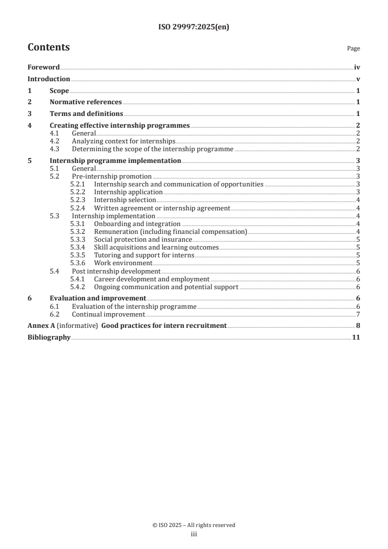 ISO 29997:2025 is a standard published by the International Organization for Standardization (ISO). Its full title is "Internships - Quality guidelines for host organizations". This standard covers: This document outlines guidance for the management of internships to enable host organizations to consistently offer and enhance internship experiences aligned with intended learning outcomes.