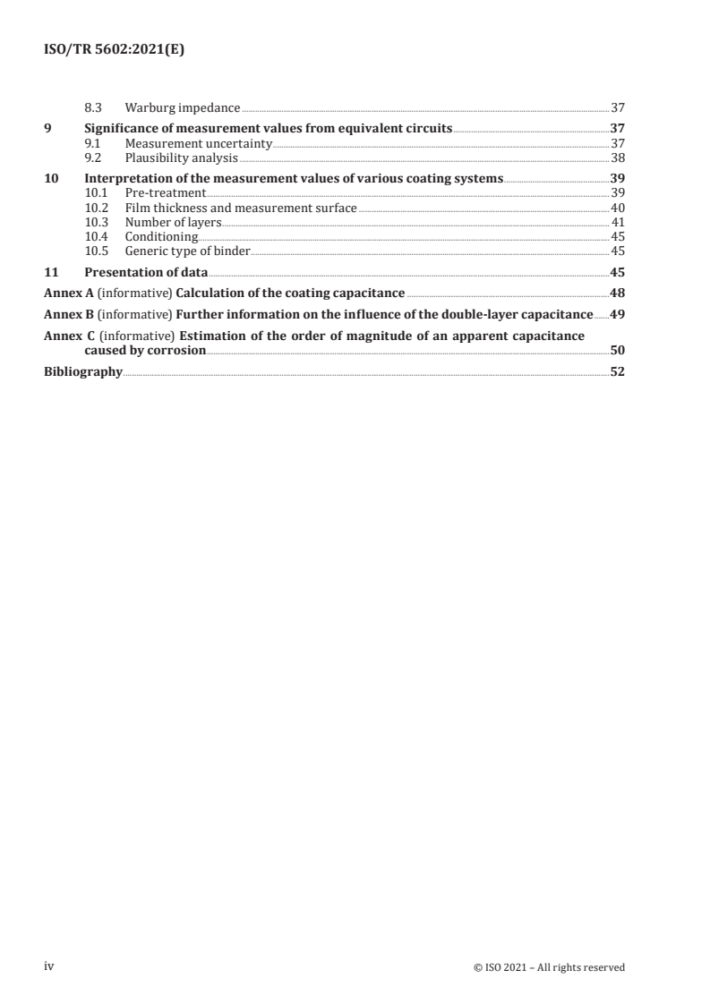 Keywords: ISO/TR 5602:2021, electrochemical impedance spectroscopy, EIS, coatings, measurement errors, impedance artefacts, equivalent circuit, coating capacitance.