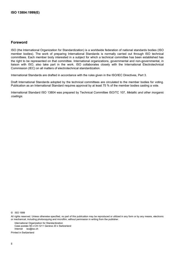 La Norme internationale ISO 13804 a été élaborée par le comité technique ISO/TC 107, Revêtements métalliques