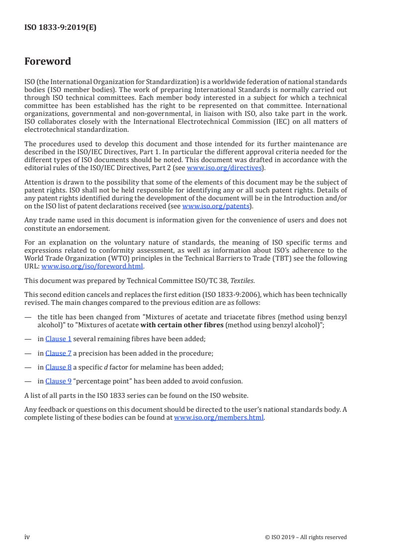 ISO 1833-9:2019 - Textiles — Quantitative chemical analysis — Part 9: Mixtures of acetate with certain other fibres (method using benzyl alcohol) Released:9/4/2019