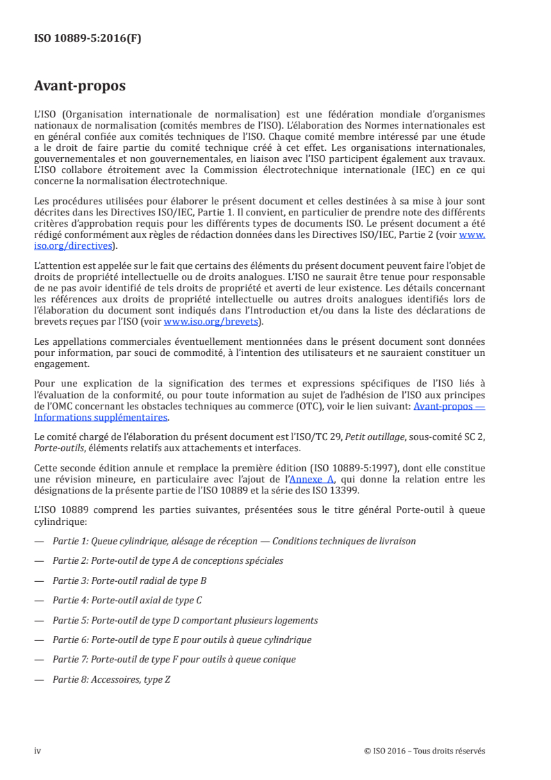 Cette seconde édition annule et remplace la première édition (ISO 10889-5:1997), dont elle constitue