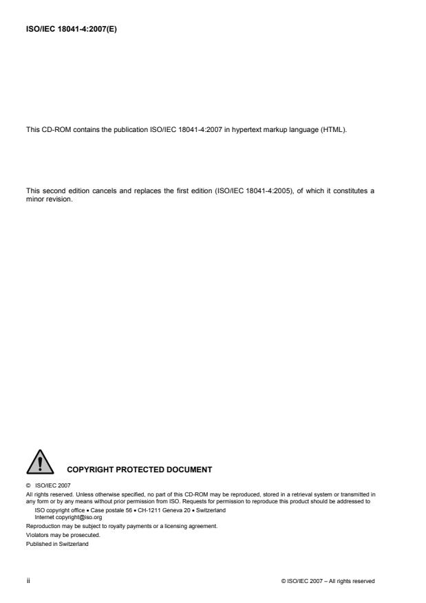 This CD-ROM contains the publication ISO/IEC 18041-4:2007 in hypertext markup language (HTML).