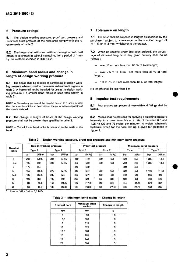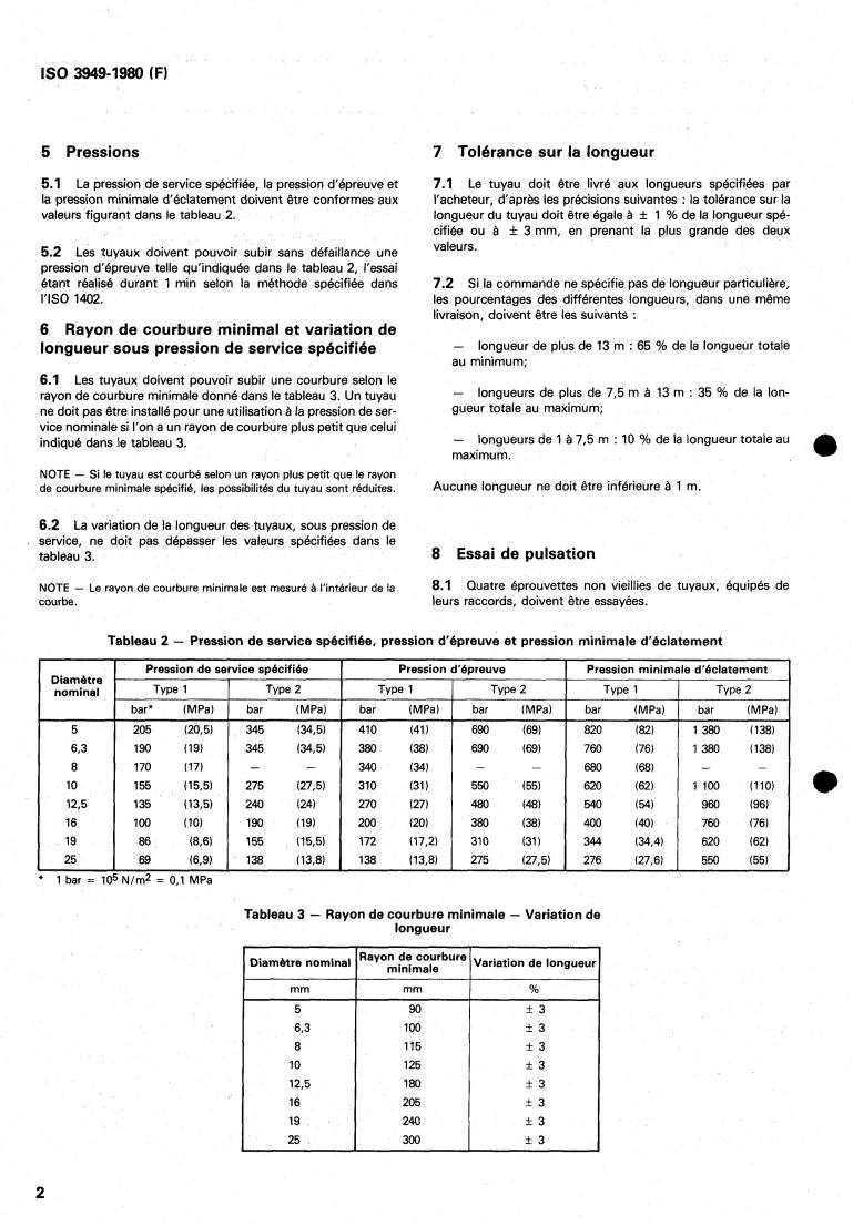 5.1 La pression de service spécifiée, la pression d’épreuve et 7.1 Le tuyau doit être livré aux longueurs spécifiées par
