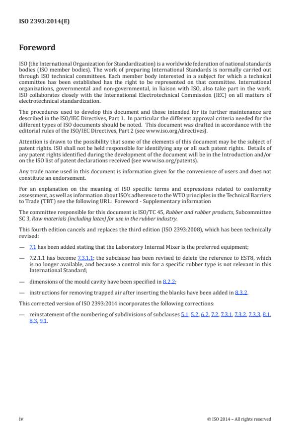 ISO 2393:2014 - Rubber test mixes -- Preparation, mixing and vulcanization -- Equipment and procedures