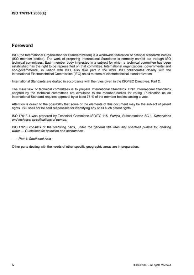 ISO 17613-1:2006 - Manually operated pumps for drinking water -- Selection and acceptance