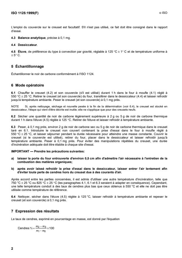 ISO 1125:1999 - Ingrédients de mélange du caoutchouc -- Noir de carbone -- Détermination du taux de cendres