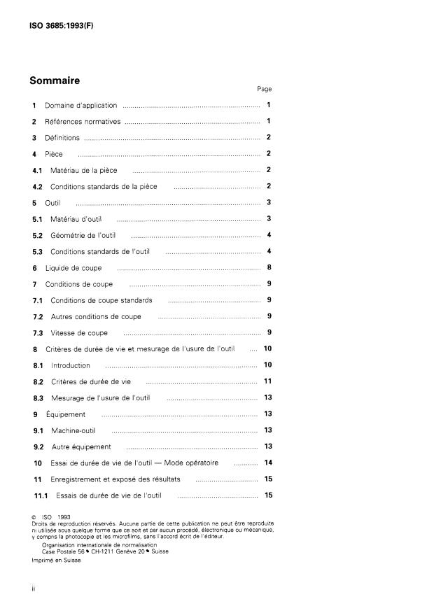 ISO 3685:1993 - Essais de durée de vie des outils de tournage a partie active unique