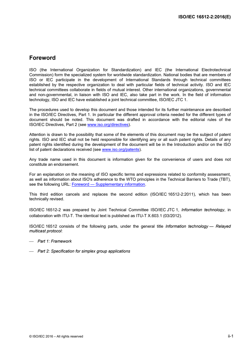 ISO/IEC 16512-2:2016 - Information technology — Relayed multicast protocol: Specification for simplex group applications — Part 2:/21/2016