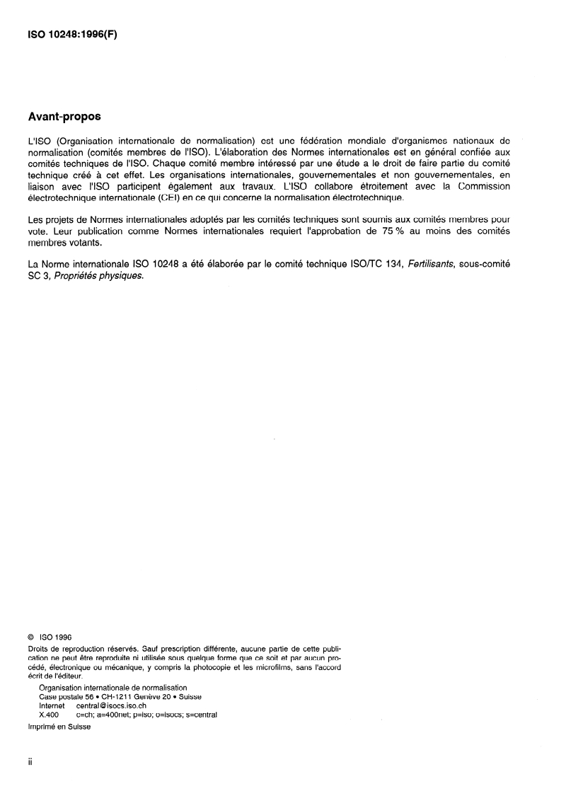 La Norme internationale ISO 10248 a été élaborée par le comité technique ISOAC 134, Fertilisants, sous-comité