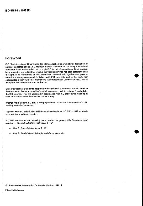 ISO 5183-1:1988 - Resistance spot welding -- Electrode adaptors, male taper 1:10