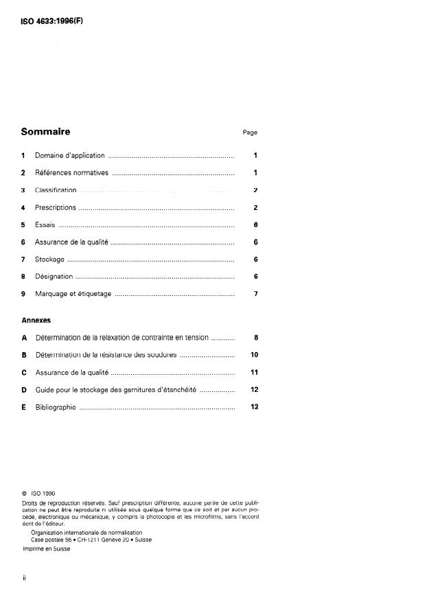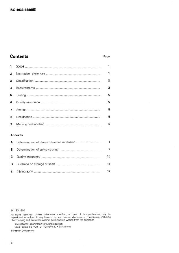 ISO 4633:1996 is a standard published by the International Organization for Standardization (ISO). Its full title is "Rubber seals — Joint rings for water supply, drainage and sewerage pipelines — Specification for materials". This standard covers: Rubber seals — Joint rings for water supply, drainage and sewerage pipelines — Specification for materials
