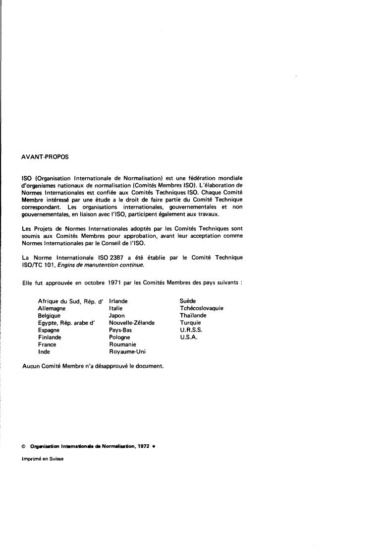 ISO 2387:1972 is classified under the following ICS (International Classification for Standards) categories: 53.040.01 - Continuous handling equipment in general. The ICS classification helps identify the subject area and facilitates finding related standards.