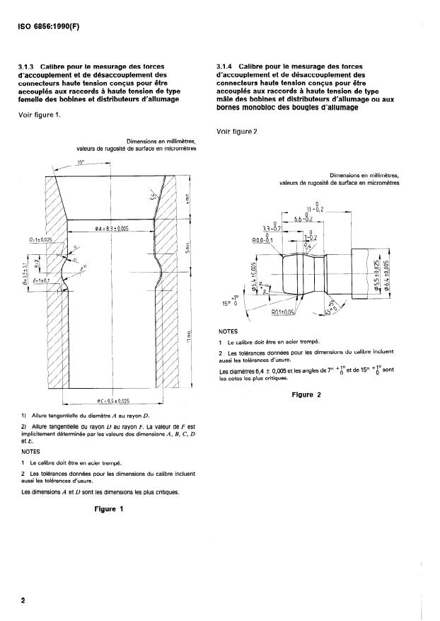2 Les tolérances données pour les dimensions du calibre incluent