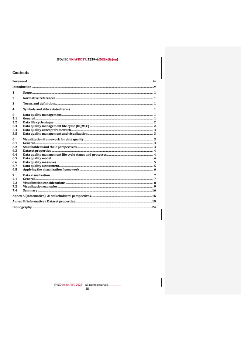 REDLINE ISO/IEC DTR 5259-6 - Artificial intelligence — Data quality for analytics and machine learning (ML) — Part 6: Visualization framework for data quality Released:11. 12. 2025